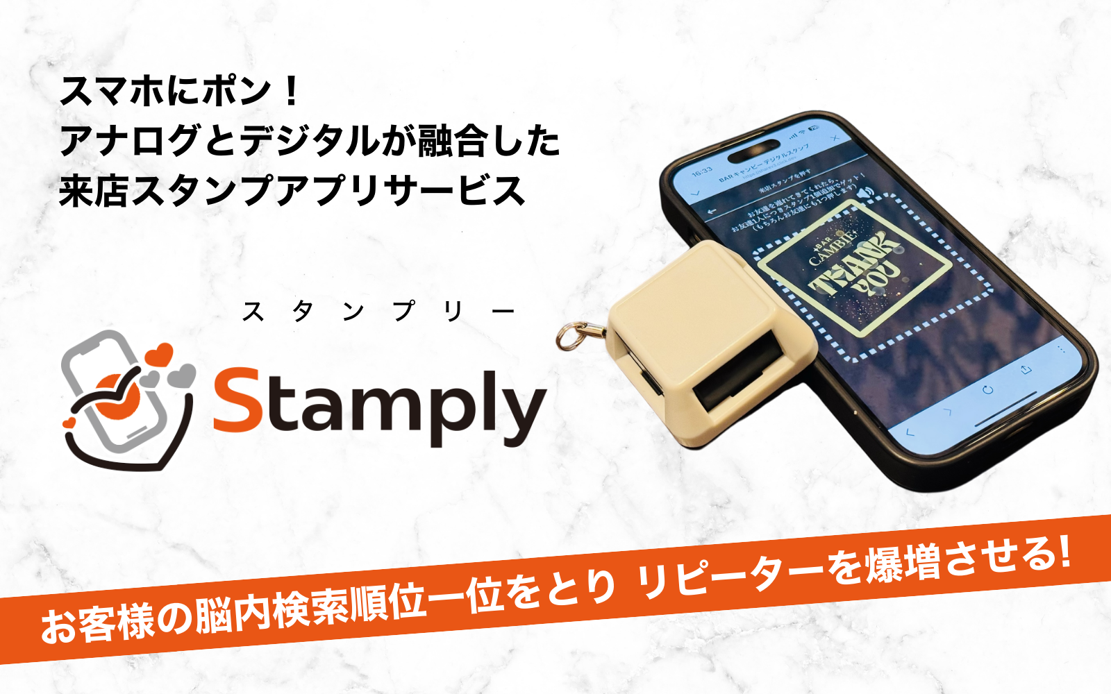 「Stamply」(スタンプリー)は、物理スタンプとスマホの“楽しい組み合わせ”の来店スタンプカードアプリシステムです。称号やランキングなど“通う楽しさ”を演出する機能がギュッと凝縮され、安価にご導入可能です。